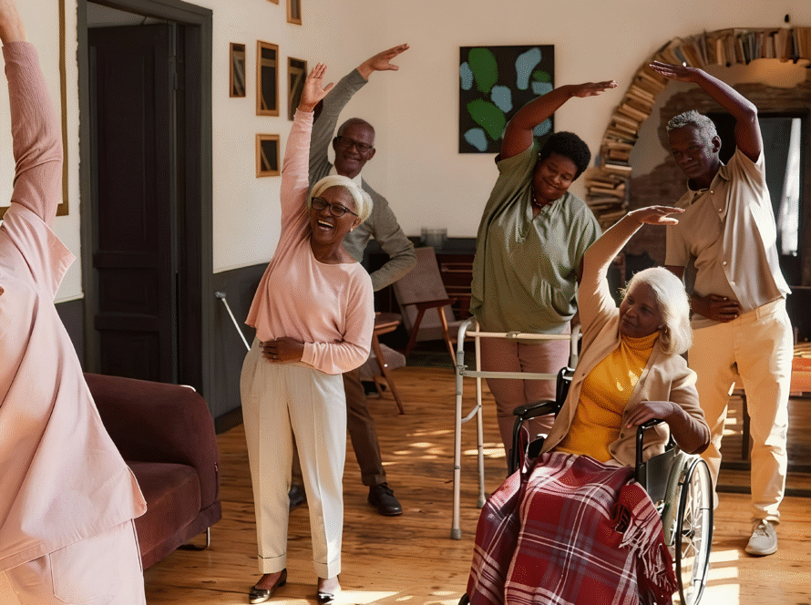 Specially designed for older adults in old people’s homes, rehabilitation centers, and private care environments. These sessions combine gentle movement to enhance mobility and flexibility, cognitive stimulation, and emotional support, while fostering meaningful social connections to reduce loneliness. By blending physical activity, mental engagement, and joyful interaction, each experience empowers participants to feel more vibrant, connected, and confident, transforming both body and spirit.